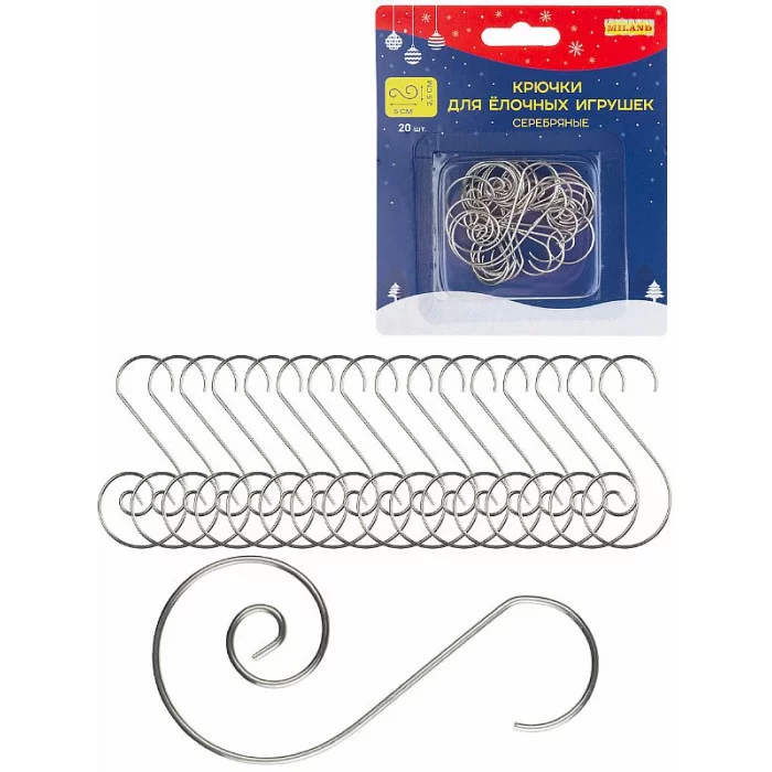 Набор металлических крючков (для ёлочных украшений) 20 шт серебристые 5*2.5см НУ-6172