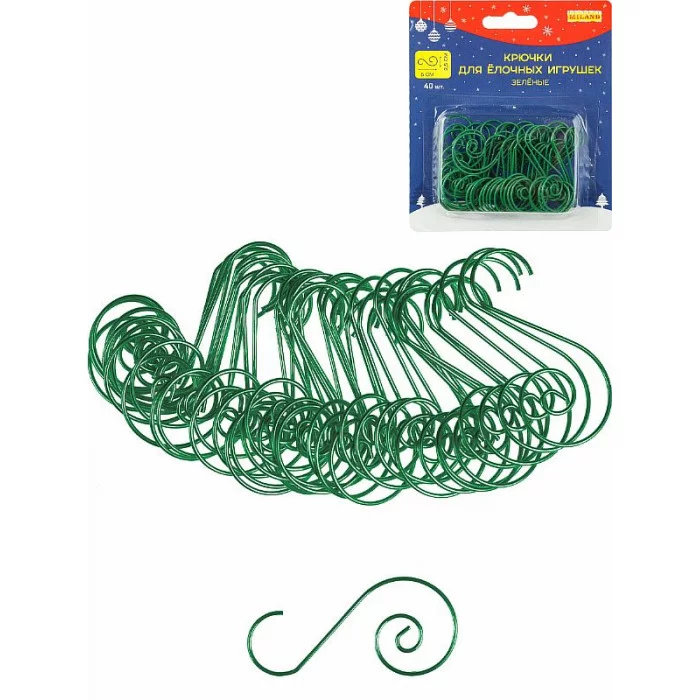 Набор металлических крючков (для ёлочных украшений) 40 шт зеленые 5*2.5см НУ-6176