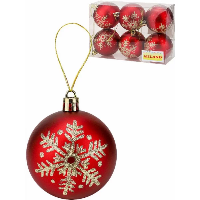 Набор новогодних красных матовых шаров с узором "Снежинка" 6 см (6 шт.) НУ-6954