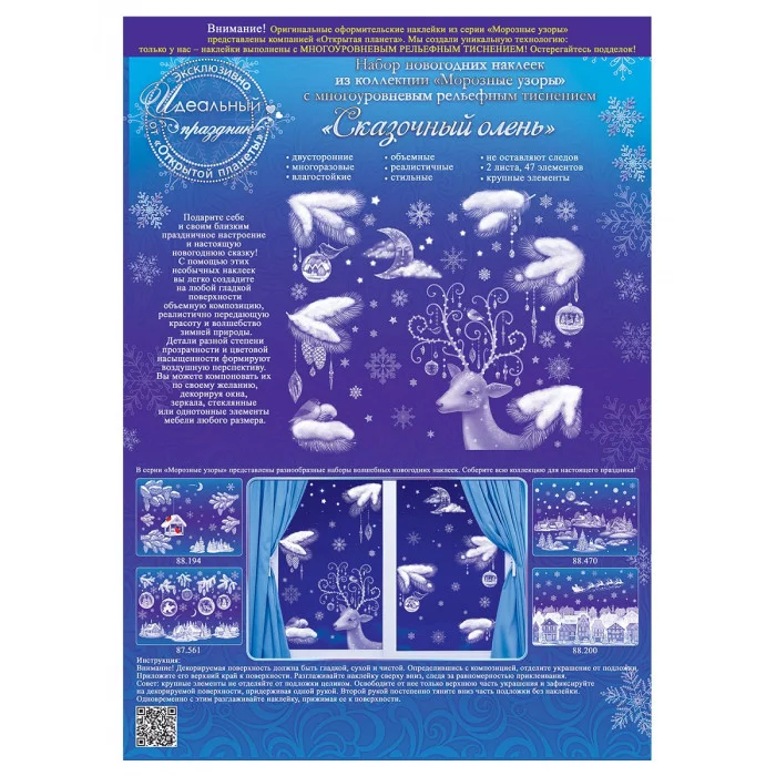 Набор новогодних наклеек "Открытая планета" "Сказочный олень" 88469