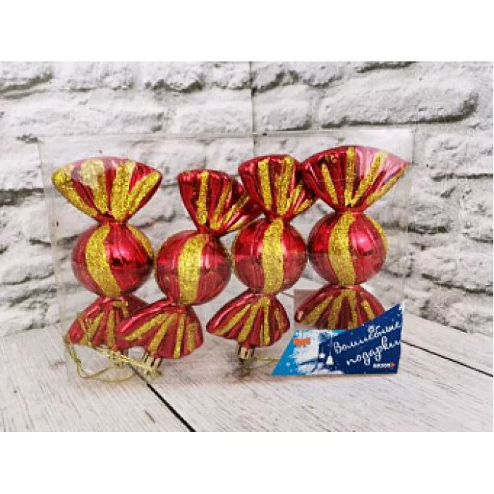 Набор подвесок "Конфетки", цвет: красный, 4 шт 11см 2334-1 8\1726