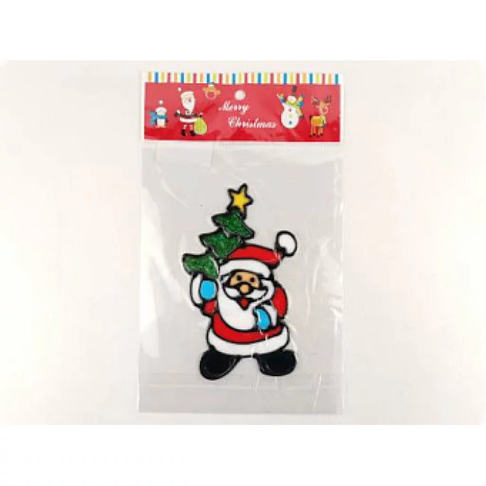 Наклейка на окно гелевая Дед мороз с ёлкой 14см, арт.6-9 6-9