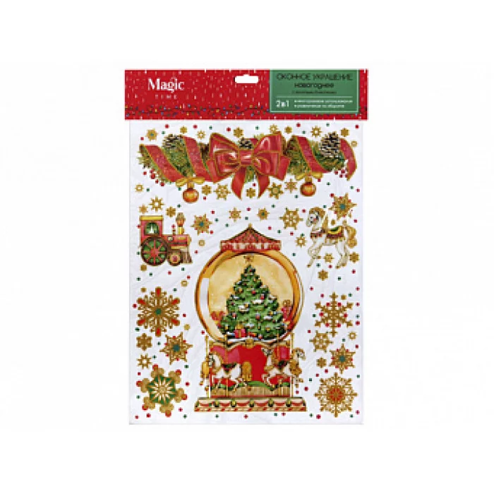 Новогоднее оконное украшение Карусель из ПВХ пленки, декорировано глиттером крепится к гладкой пове 8\5818