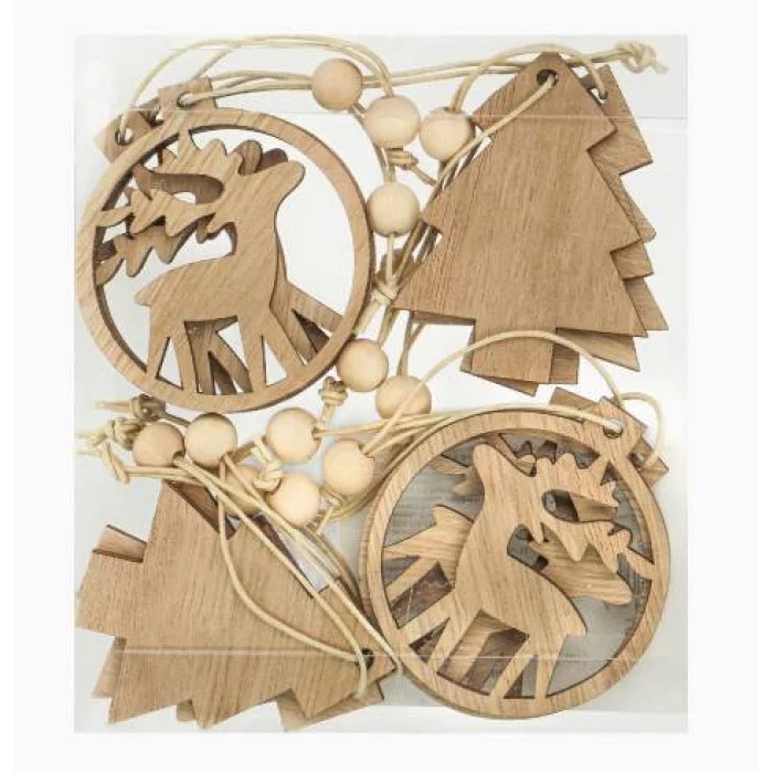 Новогоднее украшение. Набор деревянных подвесок "Праздник минимализма" 6*5, 5см 12шт./сэт НУ-8218