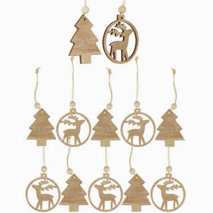 Новогоднее украшение. Набор деревянных подвесок "Праздник минимализма" 6*5,5см 12шт./сэт НУ-8218
