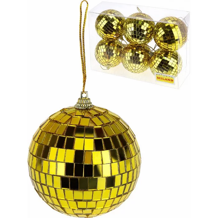 Новогоднее украшение Набор золотых дискошаров 8 см 6 шт НШ-1434