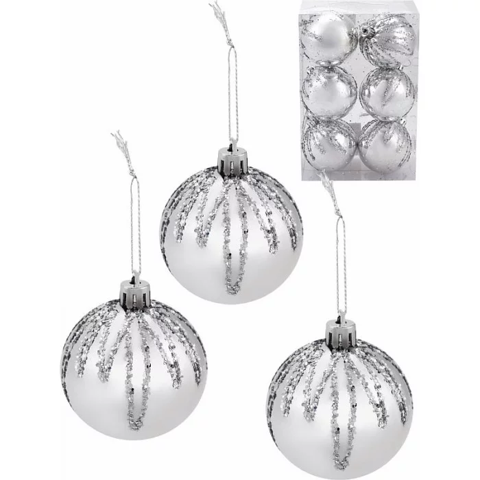 Новогоднее украшение.Набор ёлочных шаров 6см. Брызги шампанского Серебро, 6 шт НШ-1402