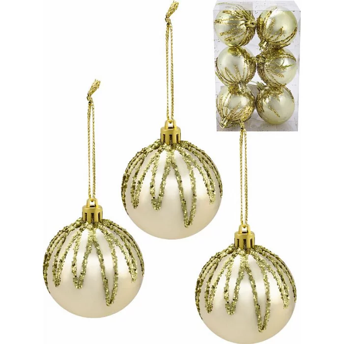 Новогоднее украшение.Набор ёлочных шаров 6см. Брызги шампанского Шампань, 6 шт НШ-1400