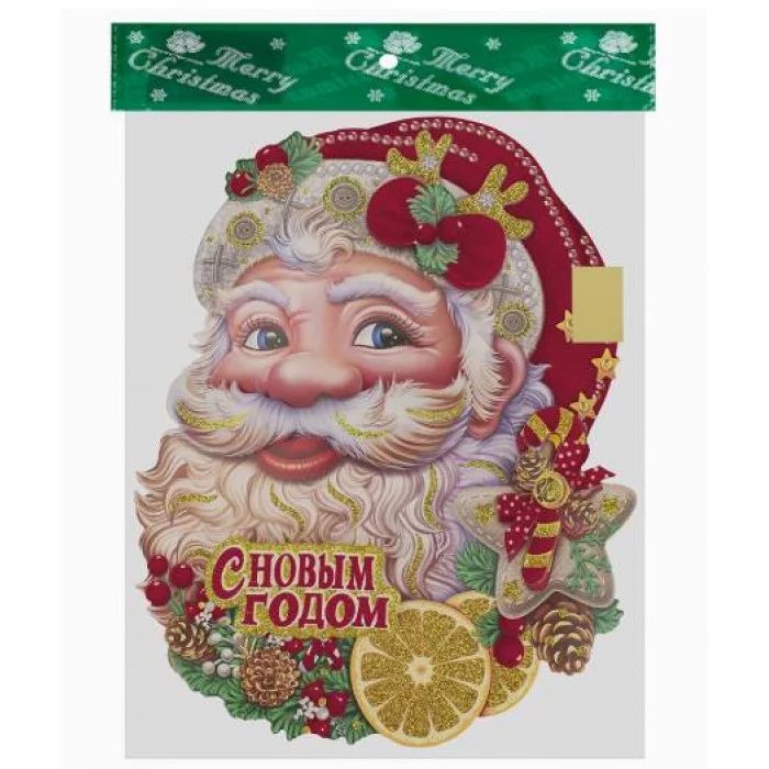 Оформительский плакат на скотче Дедушка Мороз 35см глиттер НУ-8233