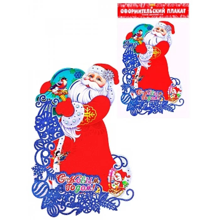 Оформительский плакат на скотче Весёлый Дедушка Мороз ,45 см,глиттер НУ-2344