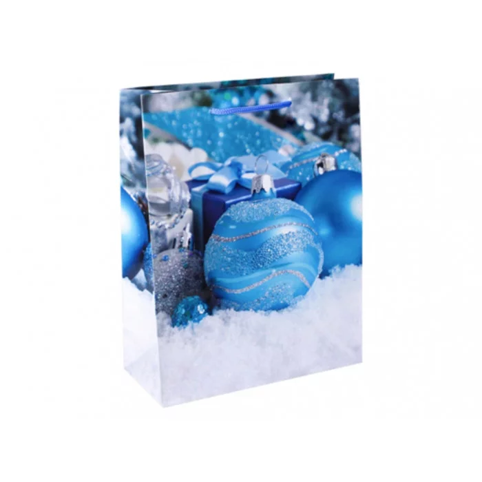 Optima Пакет подарочный с глянц. лам. 11,5x14,5x6 см (S) Голубые новогодние шарики, 128 г ПКП-6086