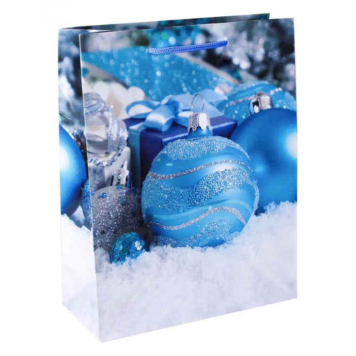 Optima Пакет подарочный с глянц. лам. 14х20х6,5 см (MS) Голубые новогодние шарики, 128 г ПКП-6098