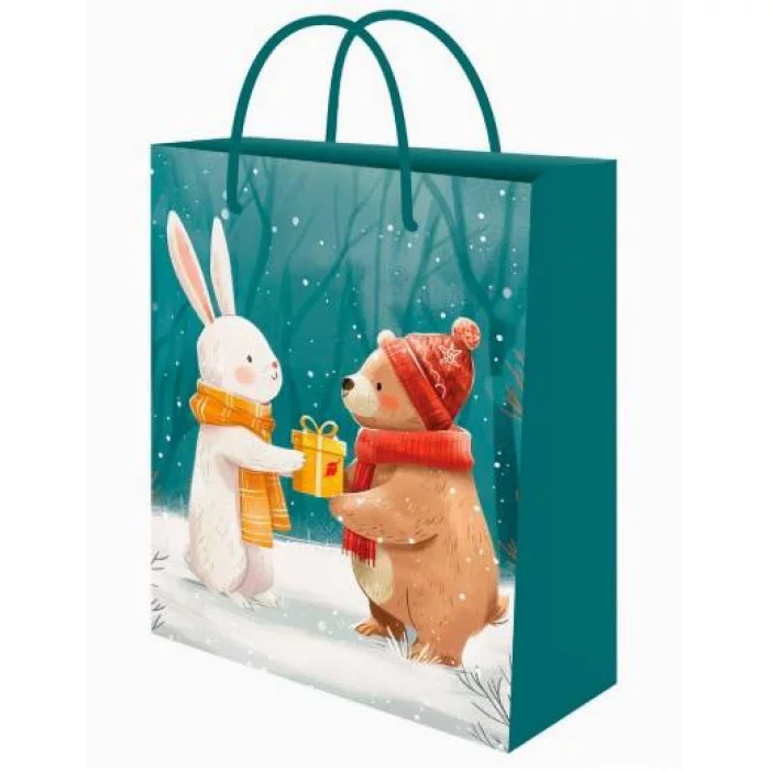 Optima Пакет подарочный с глянц.лам. 18х23х8 см (M) Заяц и медведь 128г ППК-2315
