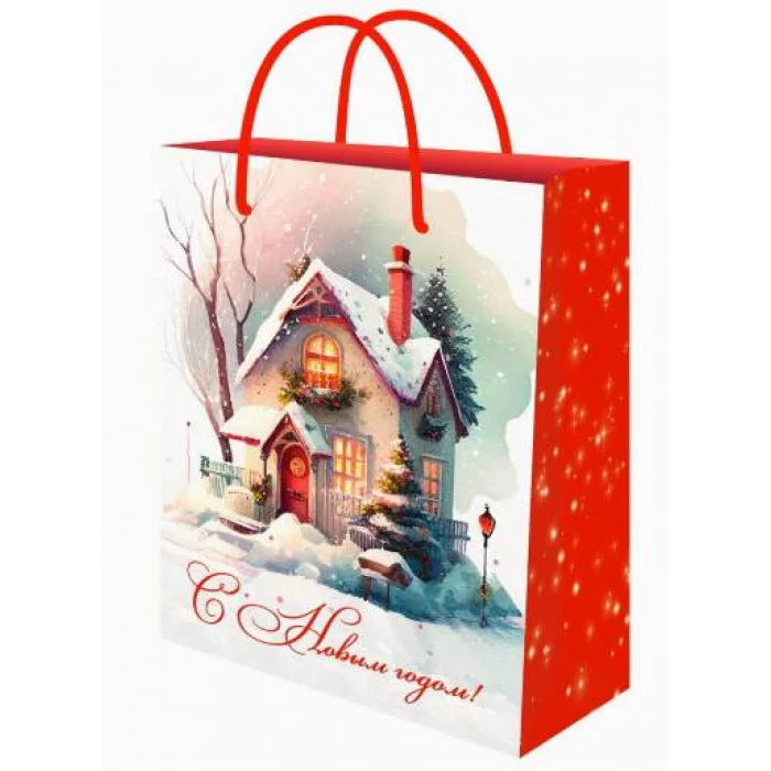 Optima Пакет подарочный с глянц.лам. 18х23х8 см (M) Зимний домик 128г ППК-2312
