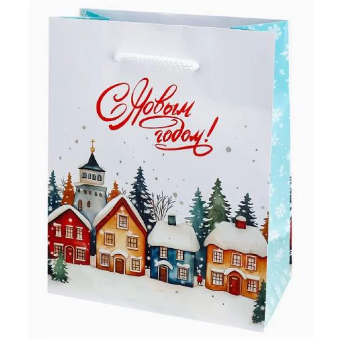 Optima Пакет подарочный с глянц.ламин. 11, 5х14, 5х6 см (S) Домики 128г ППК-2277