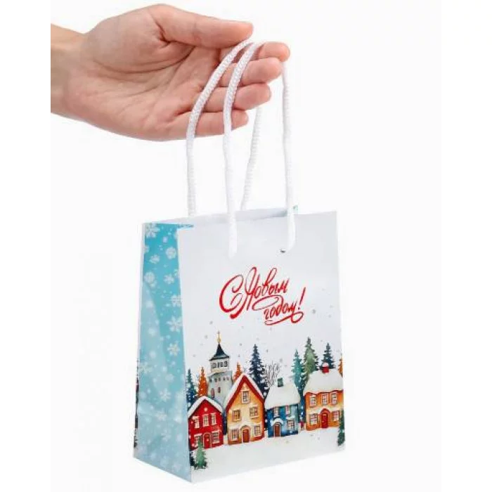 Optima Пакет подарочный с глянц.ламин. 11,5х14,5х6 см (S) Домики 128г ППК-2277