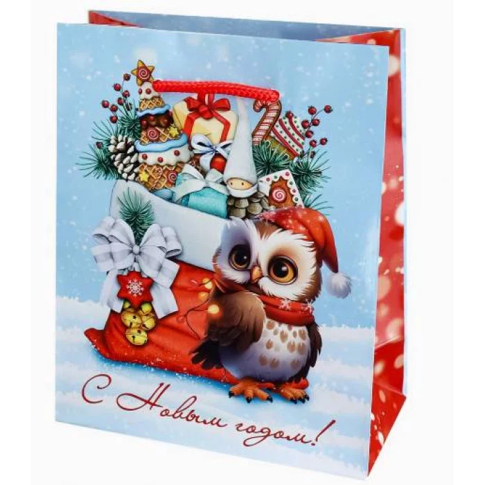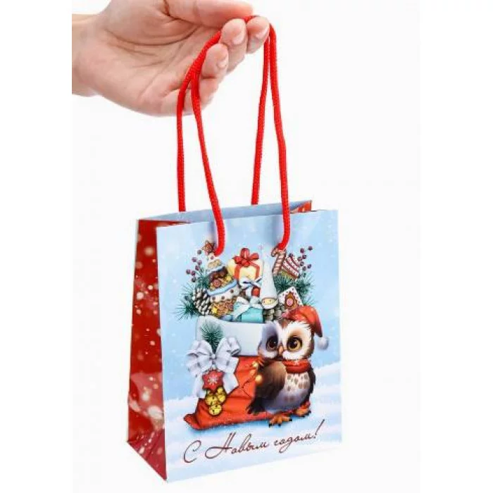Optima Пакет подарочный с глянц.ламин. 11,5х14,5х6 см (S) Сова с подарками 128г ППК-2276