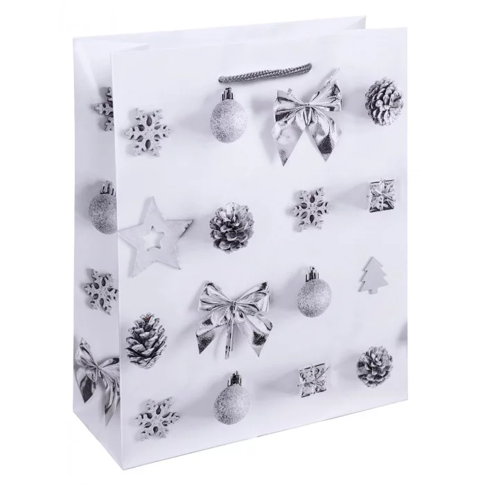 Optima Пакет подароч.с глянц. ламин.18х23х8 см (M) Ассорти блест-х украшений на белом, 128г ПКП-5661