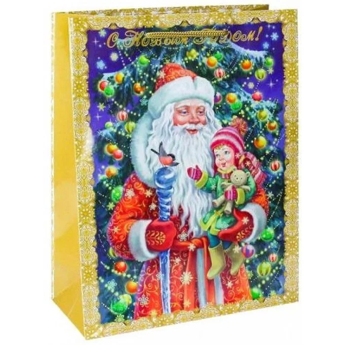 Любой подарок начинается с упаковки. А в новогодние праздники, когда так хочется атмосферы веселья и волшебства, подарки обретают особый смысл. Наш пакет поможет усилить приятное впечатление от вашего презента! Он хорошо держит форму, подходит для любых небольших предметов. Плотность: 128 гр. Размер: 18х23х8 см (М).