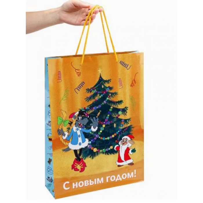 Пакет подар. с глянц.лам. 32 4*44,5*10 2см(XL)"Заяц и волк у ёлки" 157г Ну-Погоди! ППК-2926