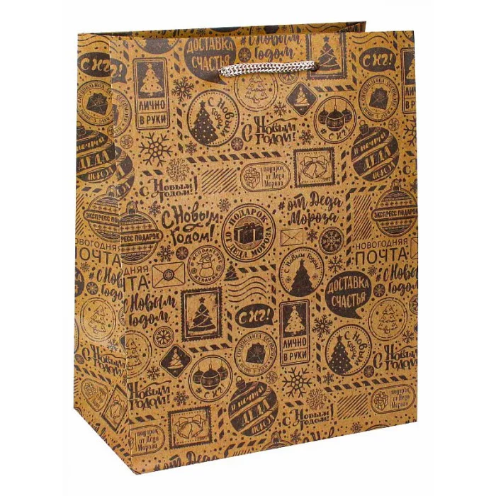Пакет подарочный из крафт-бумаги 18х23х10 см (craft M) Почтовая новогодняя посылка, 130 г ПКП-6123