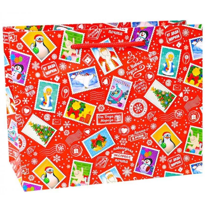 Пакет подарочный с глянцевой ламинацией (горизонтальный) 32х26х12 см (L) Новогодняя почта, 157 г ПКП-1832