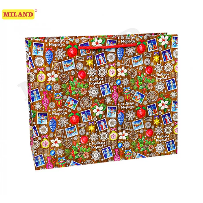 Пакет подарочный с глянцевой ламинацией (горизонтальный) 32х26х12 см (L) Посылка от Деда Мороза, 157 гПКП-1830