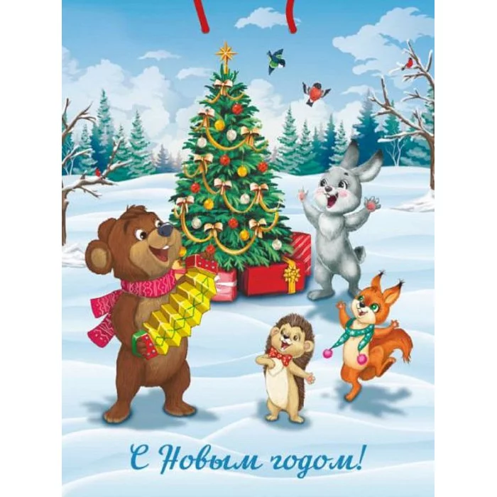 Пакет подарочный с глянц.ламин.11, 5x14, 5x6 см (S) Новогодние медвежата, 128г(собс.раз.) ПКП-6626