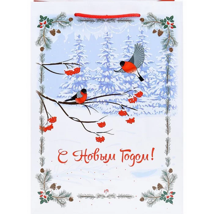 Пакет подарочный с глянц.ламин.22x31x10см(ML) Снегири на ветвях, 157г(собст.разр.) ПКП-6674