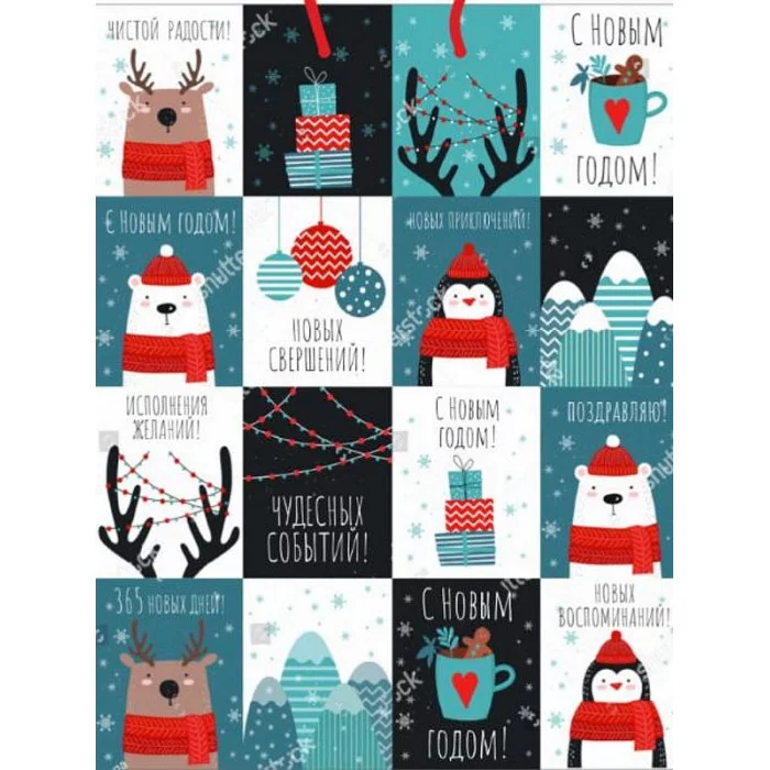 Пакет подарочный с матовой ламин.26, 4x32, 7x13, 6см(L) Новогодний коллаж, 157г(собст.разр.) ПКП-6695