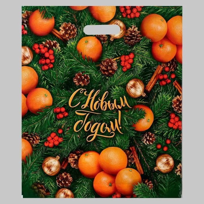 Пакет "Спелая зима", полиэтиленовый с вырубной ручкой, 40х47 см, 45 мкм 5193307