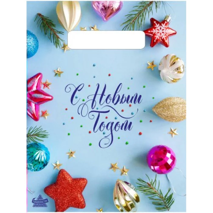 Пакет вырубной Новогодние шарики и звезды (25х19 см) н00205476
