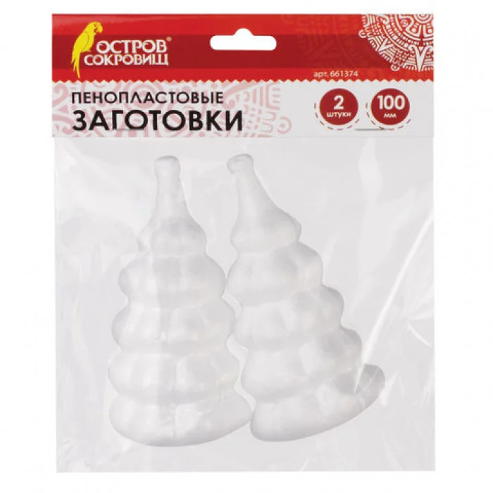 Пенопластовые заготовки для творчества "Ёлочки", 2 шт., 100 мм, ОСТРОВ СОКРОВИЩ, 661374