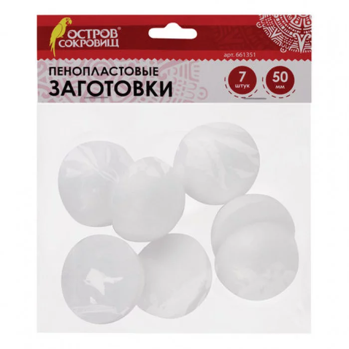 Пенопластовые заготовки для творчества "Полусферы", 7 шт., 50 мм, ОСТРОВ СОКРОВИЩ, 661351