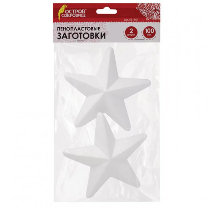 Пенопластовые заготовки для творчества "Звездочки", 2 шт., 100 мм, ОСТРОВ СОКРОВИЩ, 661367