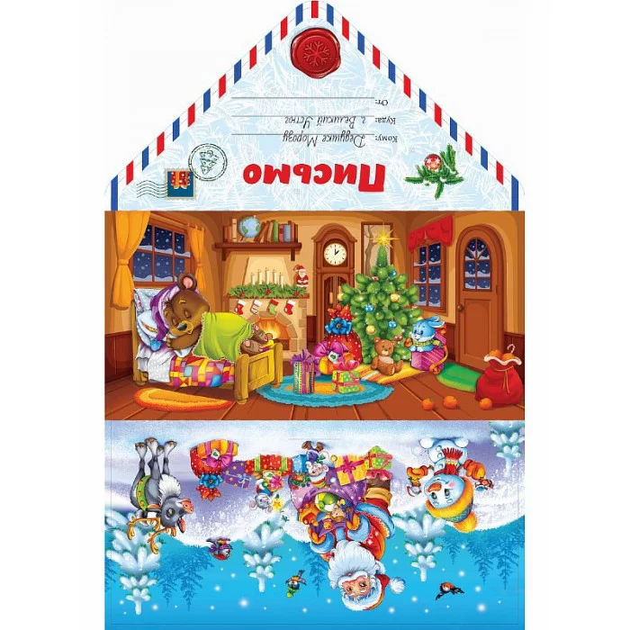 Разве есть в мире ребенок, который не писал Письмо Деду Морозу? И дети, и взрослые верят в чудеса накануне Нового Года! Написать волшебное письмо поможет наша компания! Яркое праздничное письмо собственной разработки с полноцветным дизайном и готовым шаблоном выполнено на мелованном картоне, с применением УФ-лака. Осталось только вписать имя, возраст, подарок и свернуть письмо в конверт!