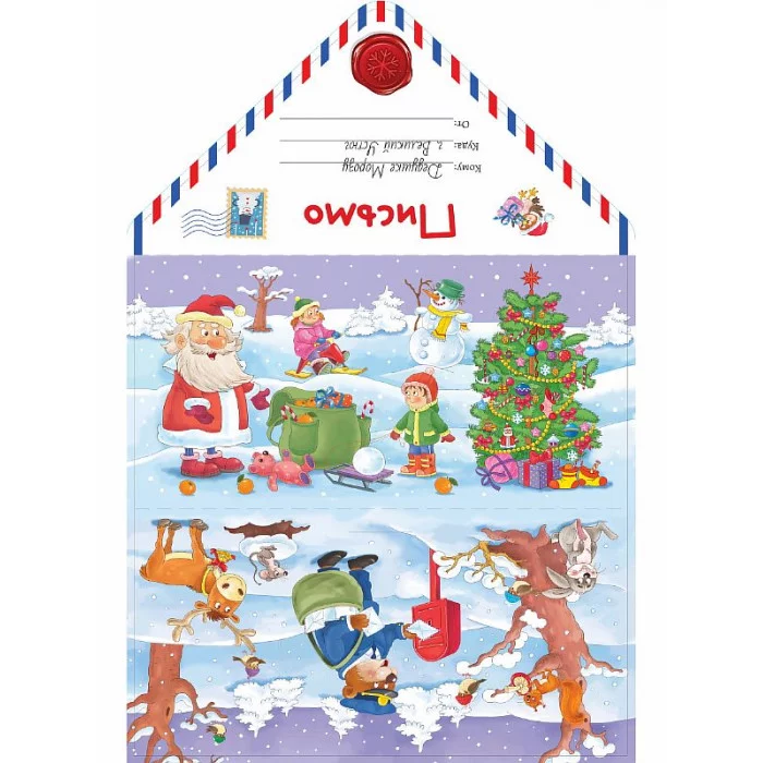 Разве есть в мире ребенок, который не писал Письмо Деду Морозу? И дети, и взрослые верят в чудеса накануне Нового Года! Написать волшебное письмо поможет наша компания! Яркое праздничное письмо собственной разработки с полноцветным дизайном и готовым шаблоном выполнено на мелованном картоне, с применением УФ-лака. Осталось только вписать имя, возраст, подарок и свернуть письмо в конверт!