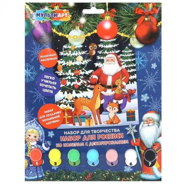 Набор для творчества — набор для росписи по номерам с декорированием «Новый год» из серии «Сказочная мастерская» ТМ «Мульти Арт» — отличный подарок для маленького художника.