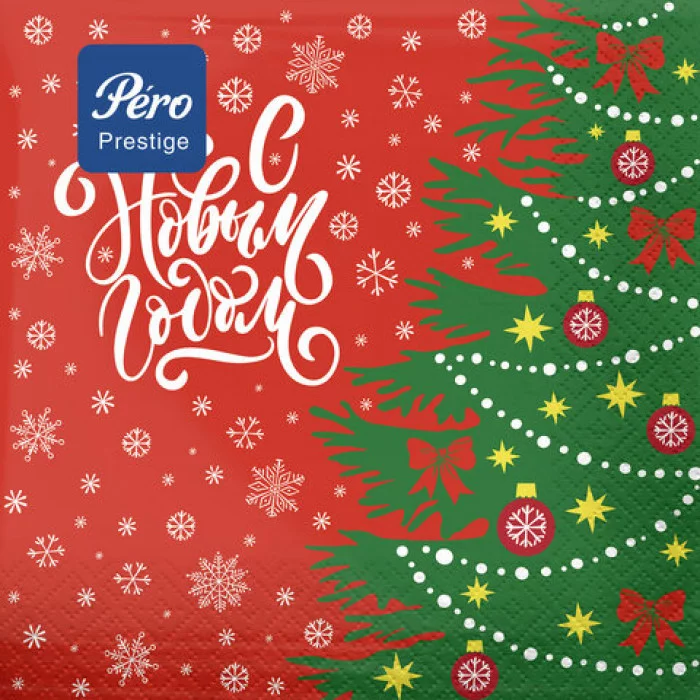 Салфетки бумажные 20 шт., 33х33 см, "Елочка", 3-слойные, PERO Prestige, 7601