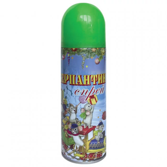 "Синтетический серпантин зеленый в спрее для новогоднего декорирования.