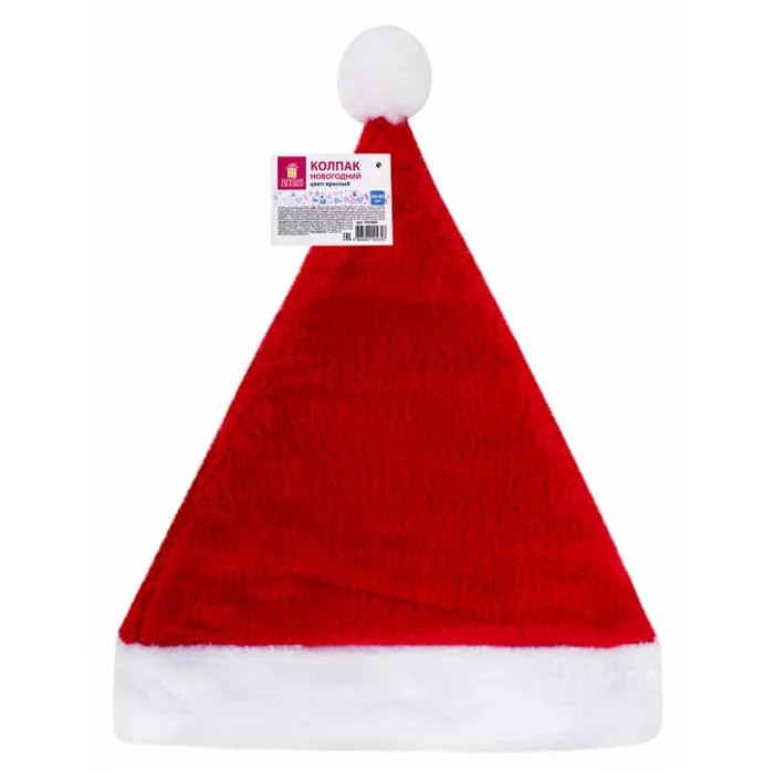 Шапка новогодняя 30х40 см, красная с белым плюшем, ЗОЛОТАЯ СКАЗКА, 592008