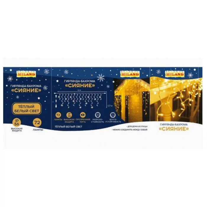 Гирлянда-бахрома никого не оставит равнодушным! Она поможет создать теплую и уютную атмосферу в доме в любое время года. Гирлянду можно повесить на окно или стену, использовать в качестве ночника. Свет: теплый белый. Размер: 4х0,7 м. Количество ламп: 72 шт.