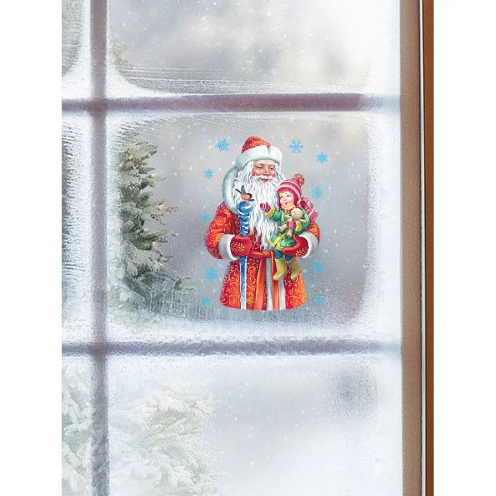 Силиконовая новогодняя наклейка Дед Мороз с малышом 25*33 см "Собственная разработка" НУ-4979
