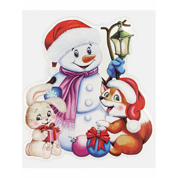 Силиконовая новогодняя наклейка "Снеговичок с друзьями" 25*25см(собс.разраб) НУ-7017