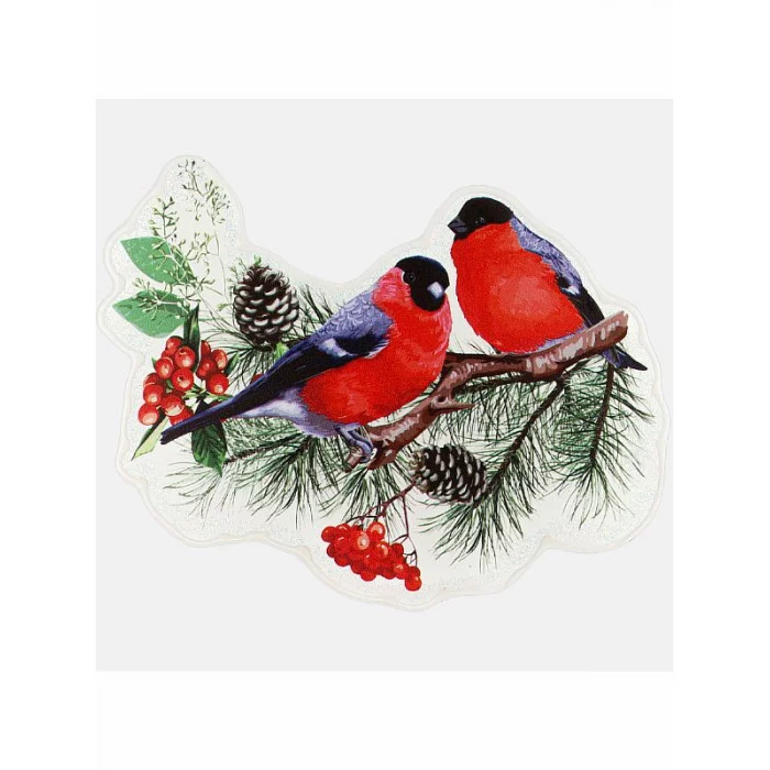 Силиконовая новогодняя наклейка "Зимние снегири" 20*20см(собс.разраб) НУ-7011