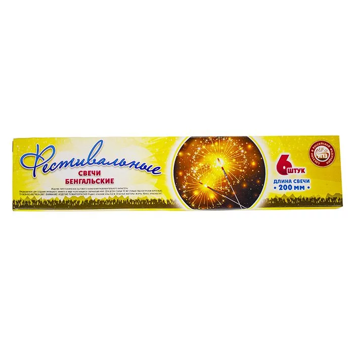 Свеча бенгальская Фестивальная желтая 6шт. 200мм 2019-0001 652-919