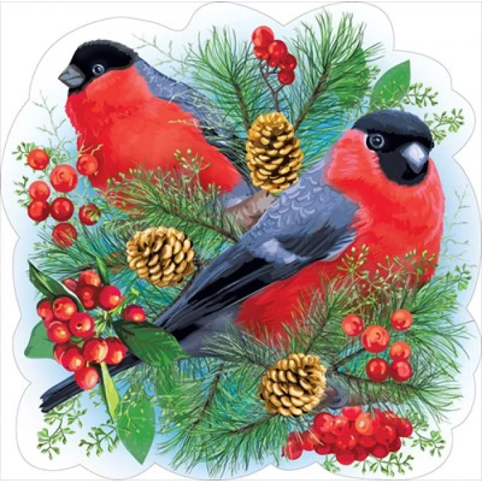 Украшение на скотче снегири с ветками 079.329