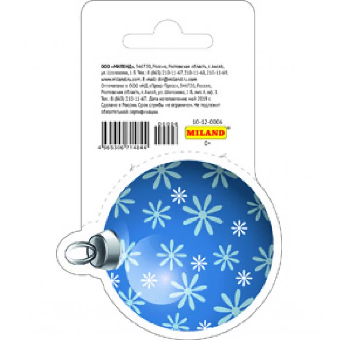 Вырубной элемент-подвеска "Елочный шар" (голубой) 80*80 мм 10-12-0006
