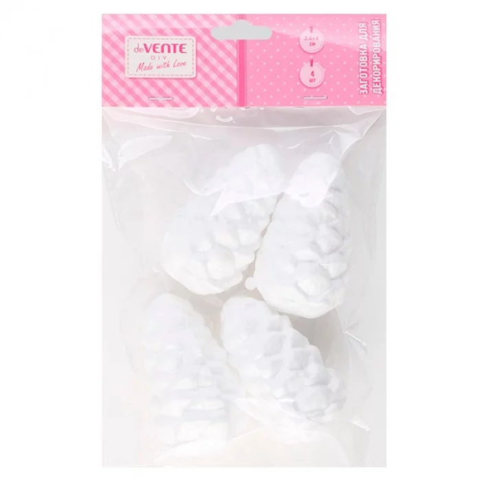 Заготовка для декорирования "deVENTE. Шишки" из пенополистирола, 74x40 мм, 4 шт, в пластиковом пакете с подвесом