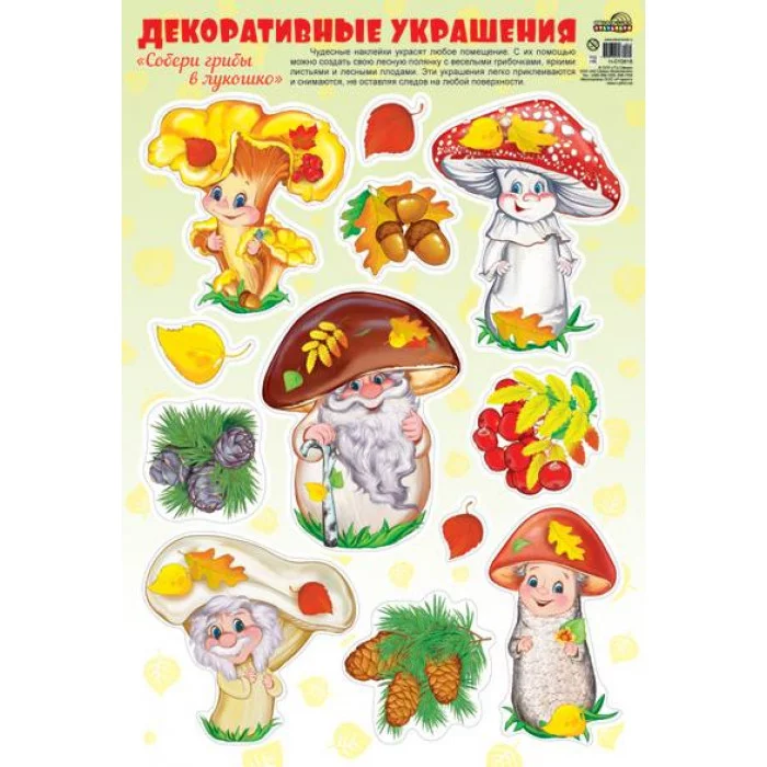 Н-10816 Наклейки А3. Осень золотая. Собери грибы в лукошко(лисичка, мухомор...) / (о) Сфера
